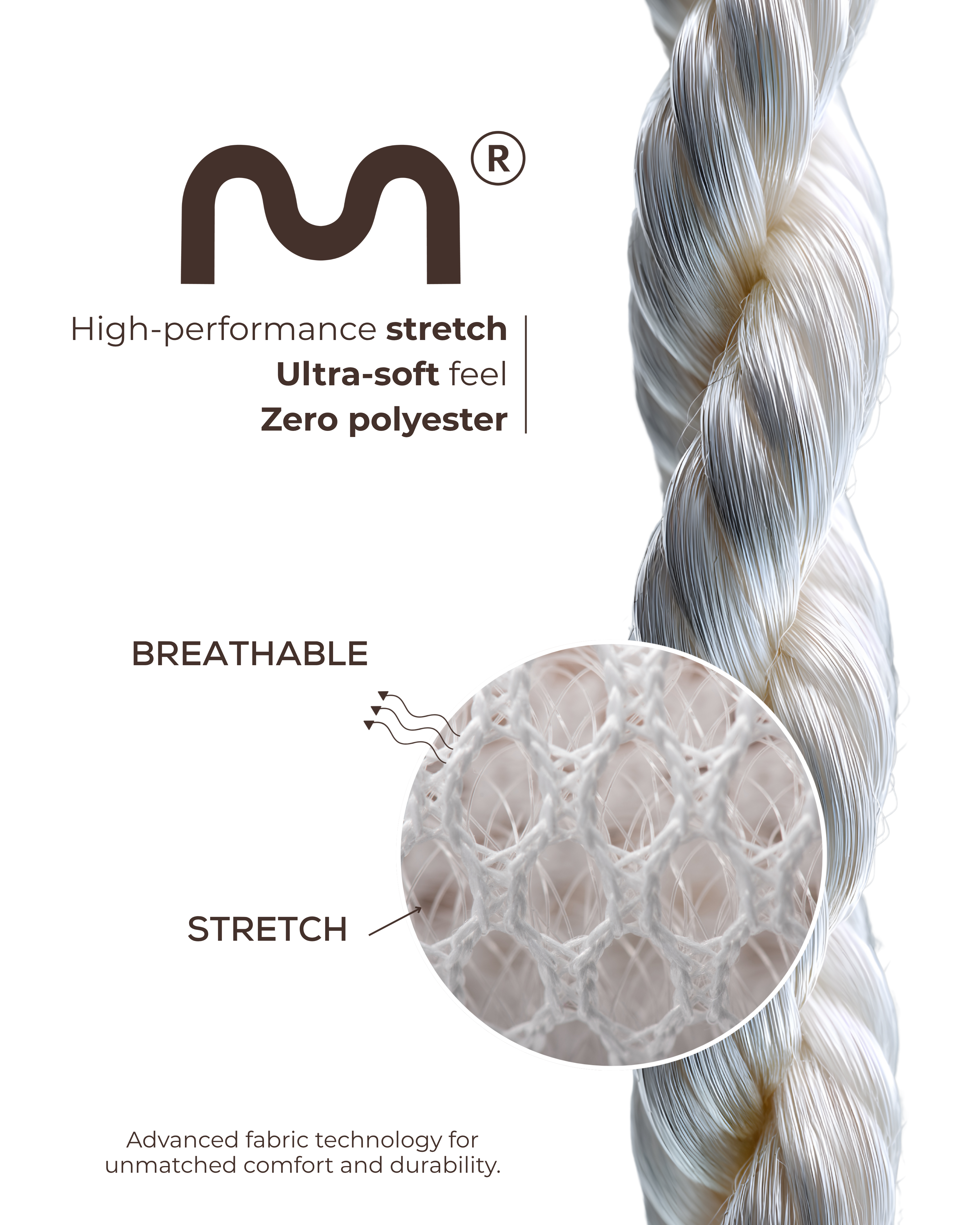 Zero polyester, just high-performance comfort and a flawless, second-skin feel.